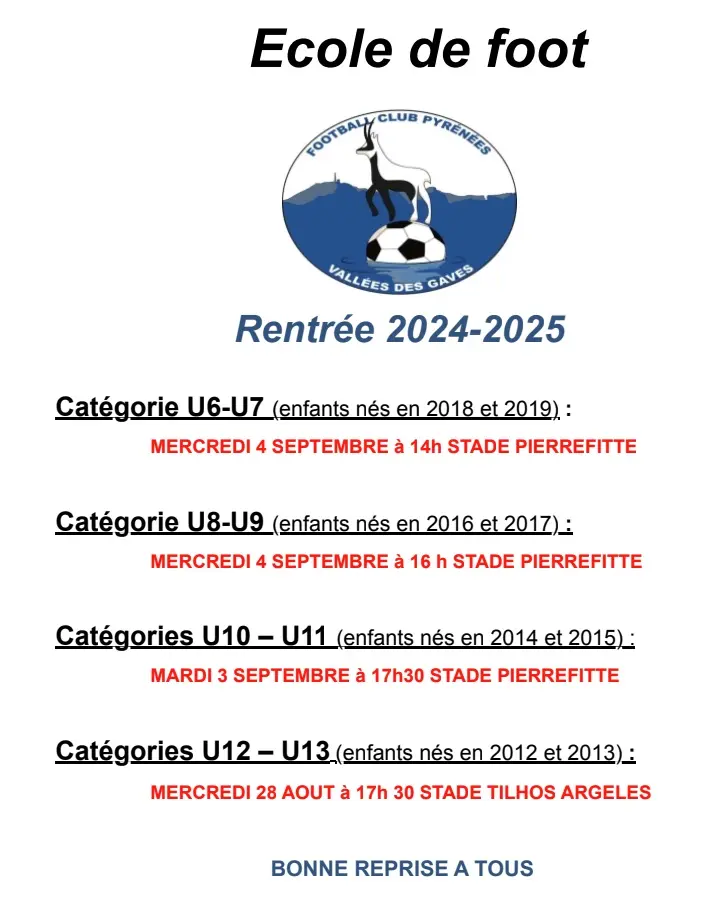 Dates, horaires et lieux de reprise pour toute l’école de foot
